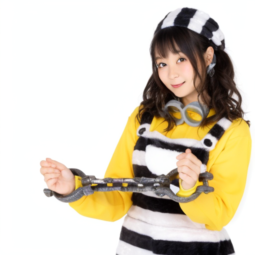 ではリアル写真を i2i してみます。元になる写真は、ぱくたその「茜さや」さんの次の写真をお借りしてきました。ちょっと手錠をされて、悲しい感じの表情です。